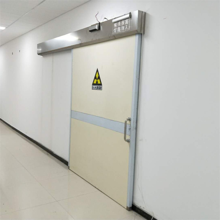 电动推拉铅门的制造过程非常严格,首先选用优质钢材作为门框和门扇的基材,表面覆盖高纯度的铅板,经过精密加工和焊接而成。铅板具有高密度特点,能够有效吸收和阻挡X射线、γ射线等有害辐射,而钢材则提供了强固的支撑和稳定性,确保门在使用过程中不会变形或损坏。